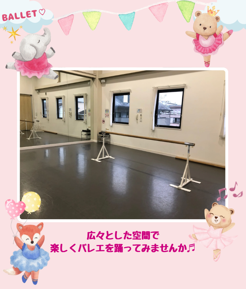 バレエに必要な柔軟を行い、バレエの基礎を学びながら、音楽に合わせて楽しく体を動かします。